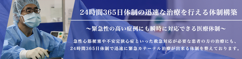 循環器内科・心臓内科では循環器領域の全ての疾患に対応いたします。循環器救急については24時間・365日診療できるシステムを構築しております。