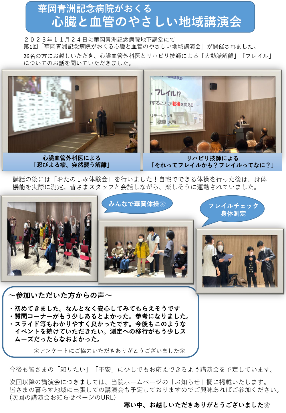 華岡青洲記念病院がおくる 心臓と血管のやさしい地域出張講演会
