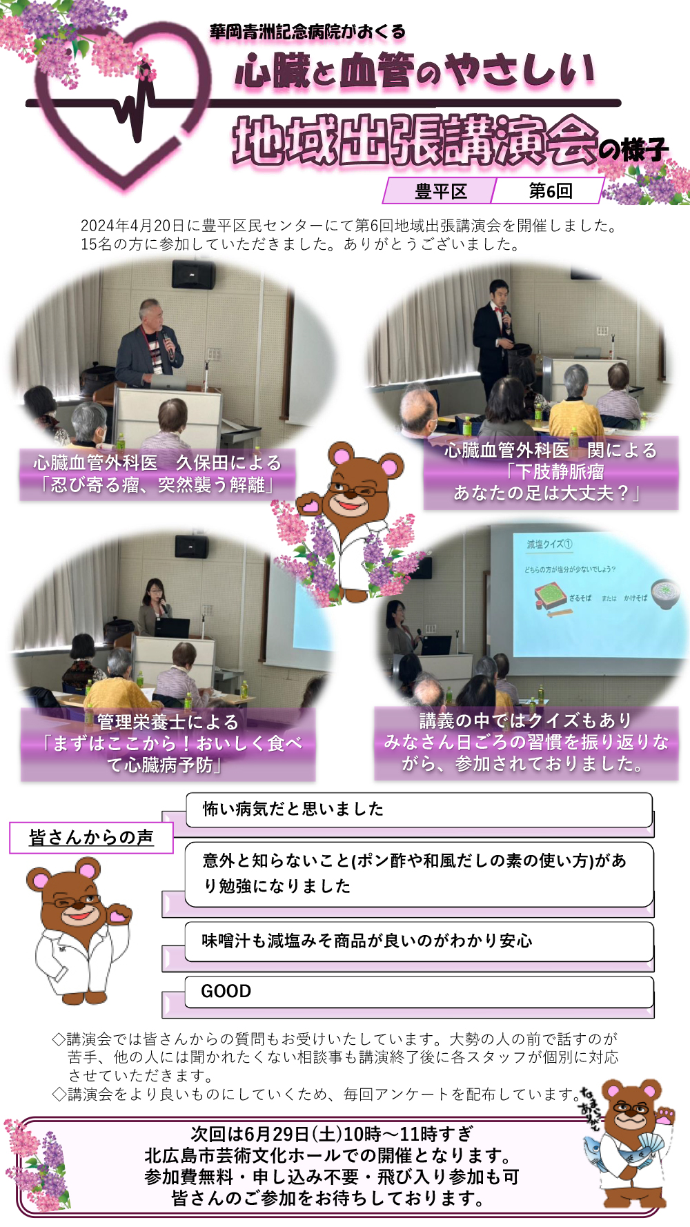 地域の皆さんのところへ出張させていただき、心臓や大動脈の病気をやさしくそしてわかりやすくお伝えいたします。