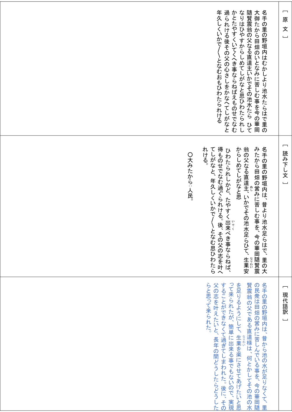 水みたば心をこめて田うへせよ 池の昔を思ひわすれず