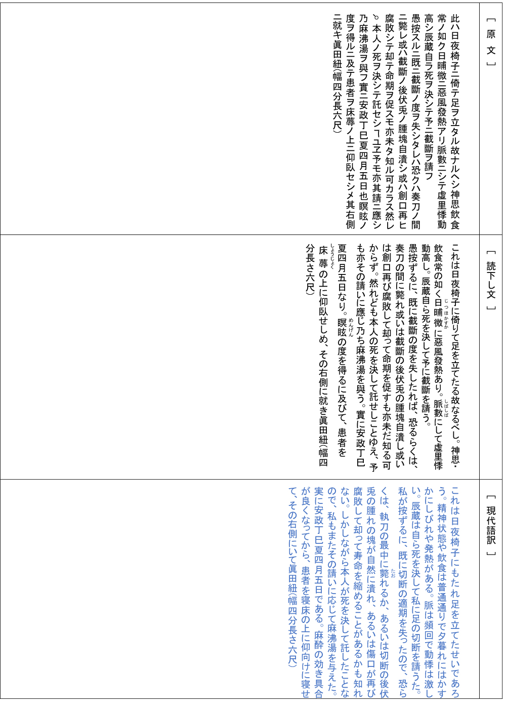 (ただし、鎌田の患者は蝮に咬まれたのであって脱疽ではありません。)