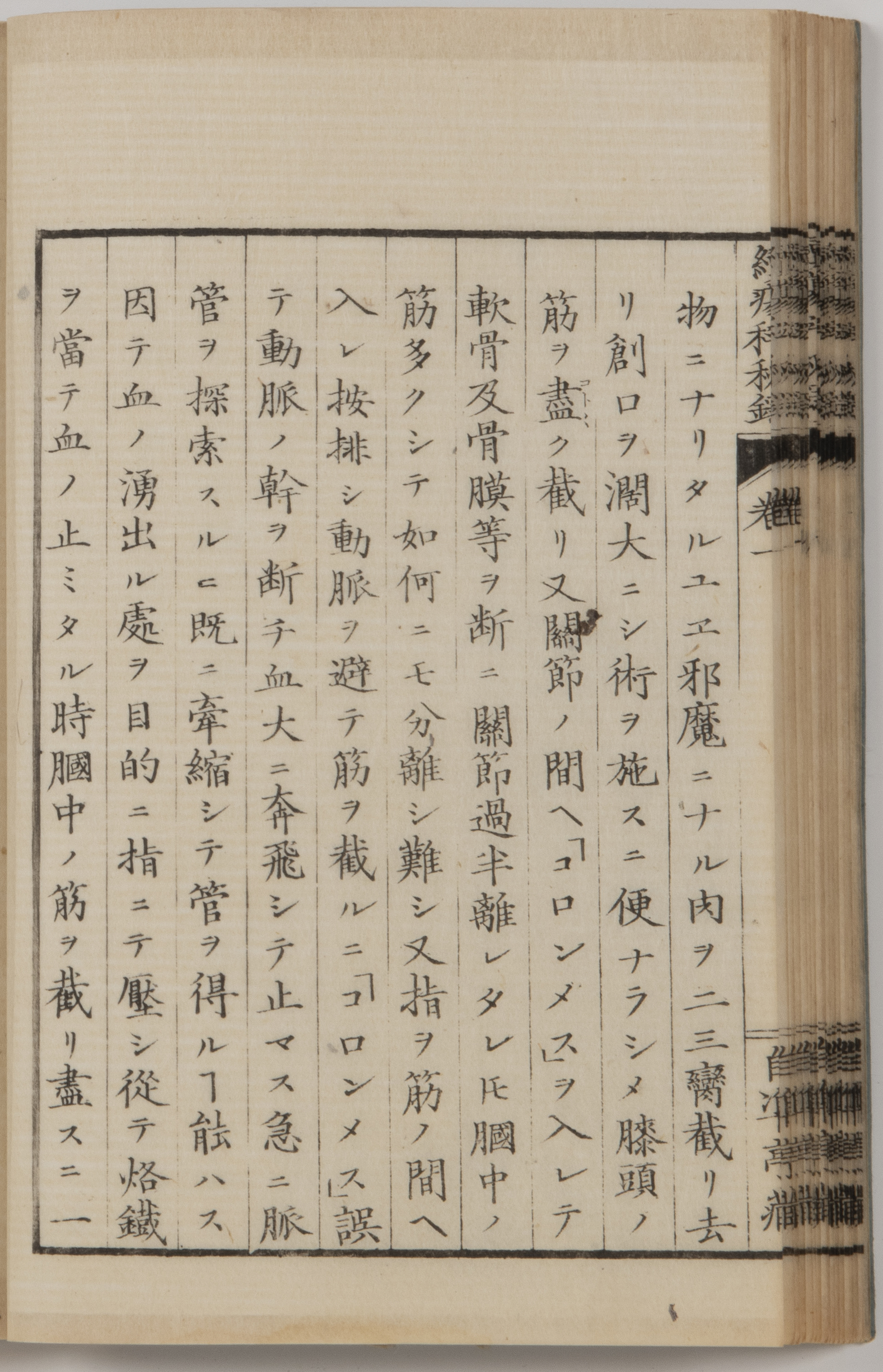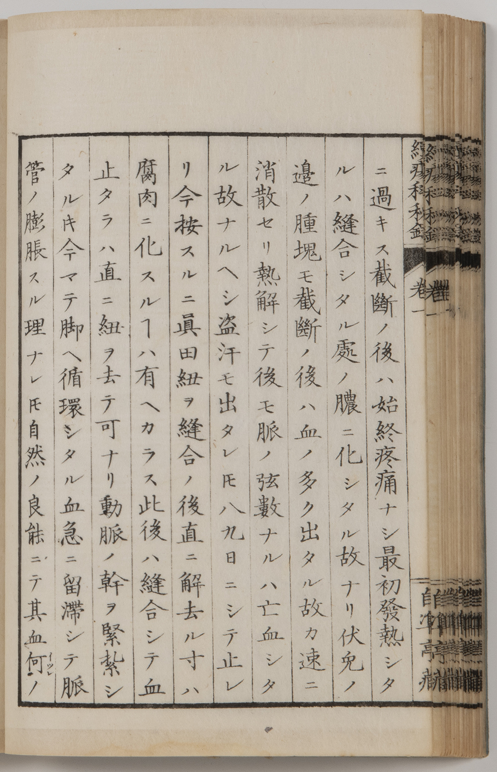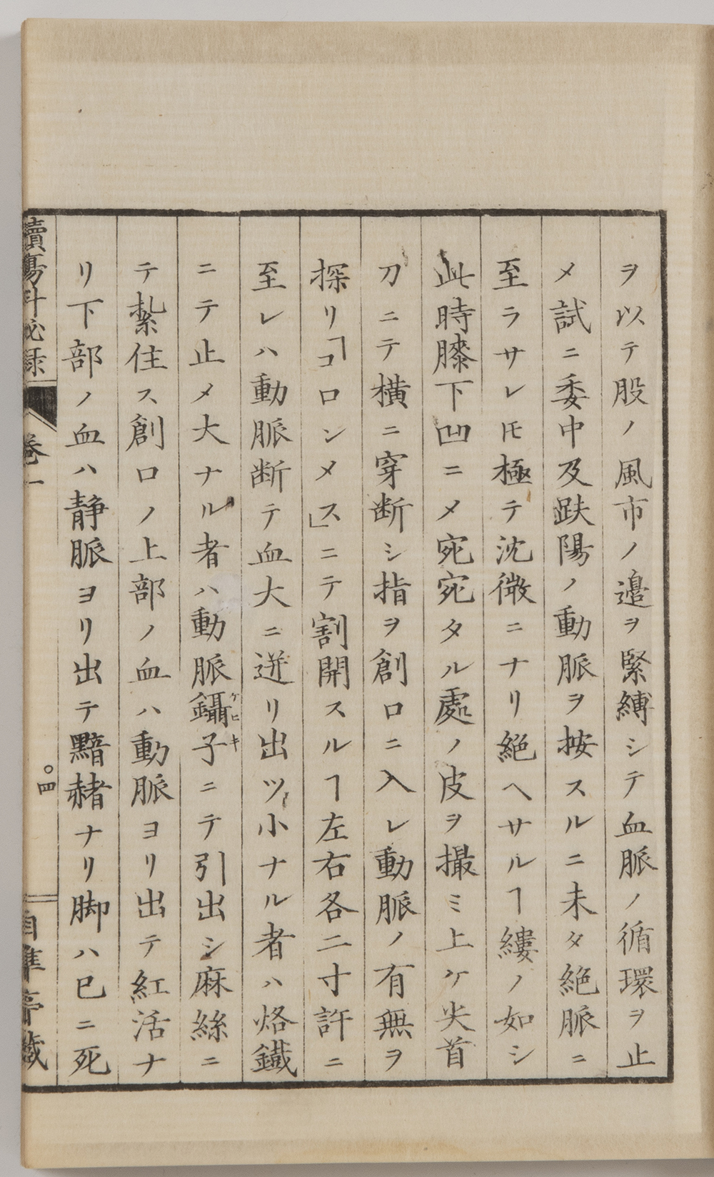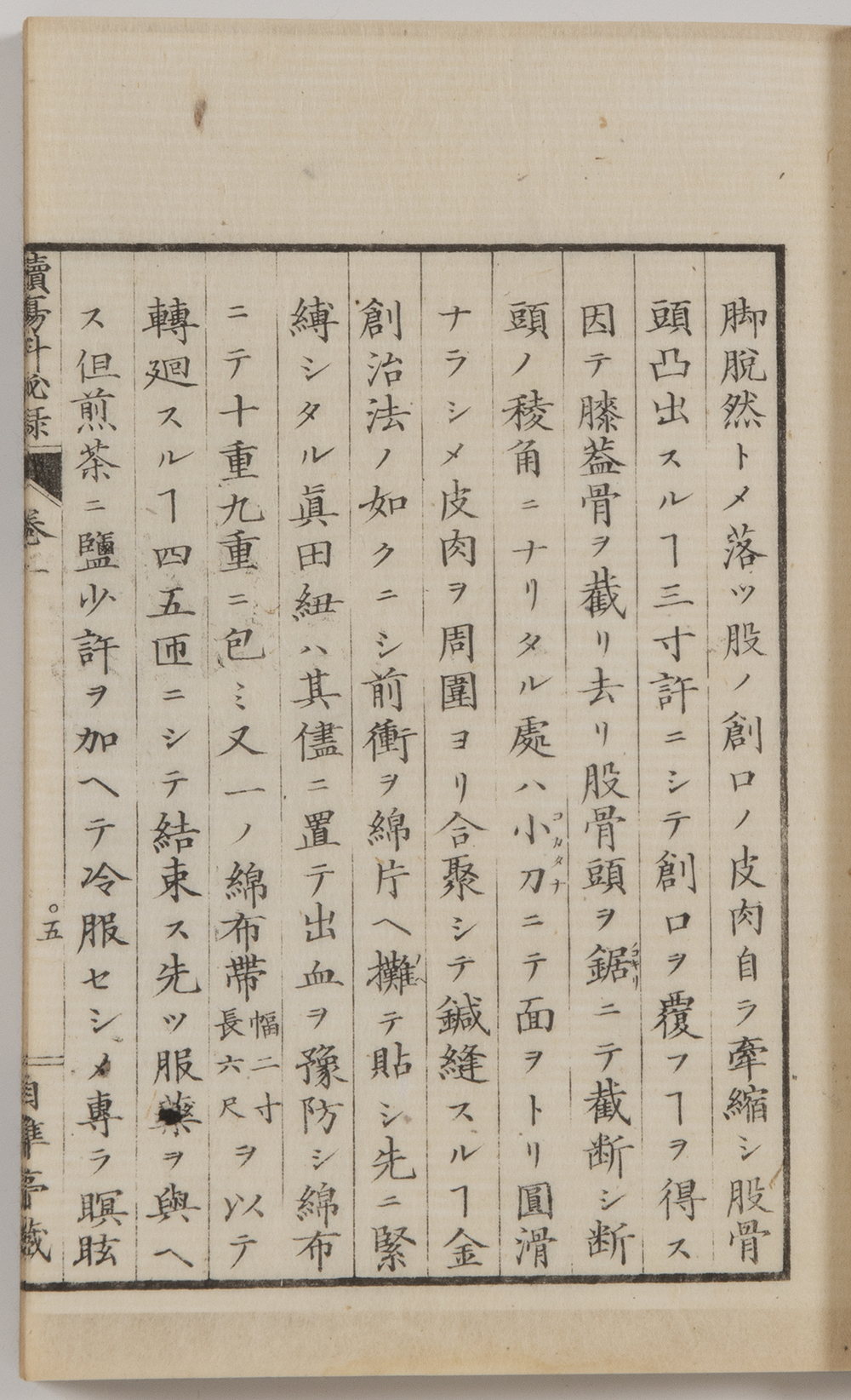 前回(第12回)で紹介した鎌田玄台『外科起廃図譜』(天保11年出版)の中で同様手術が描かれておりその絵の説明では患者に麻酔をしており、患者のほかは術者1人のみ描かれております。