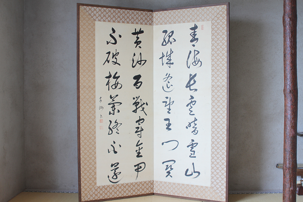 ※今回の遺墨は2曲屏風2隻と扁額2面、掛軸2幅である。