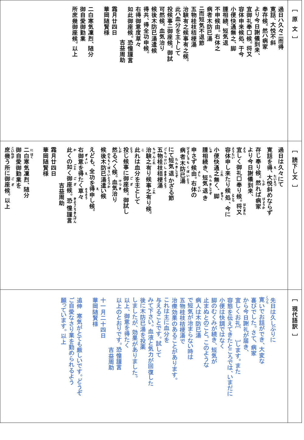 次に掲げるように青洲は手紙にて初めての乳がん手術を報告したり、病人に対して漢方の教えを請うたりしております。