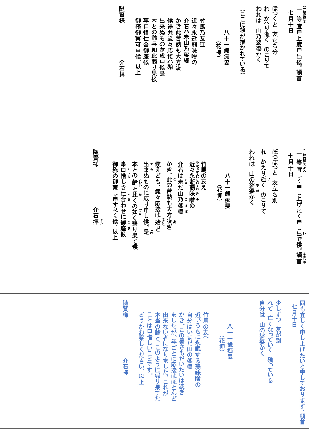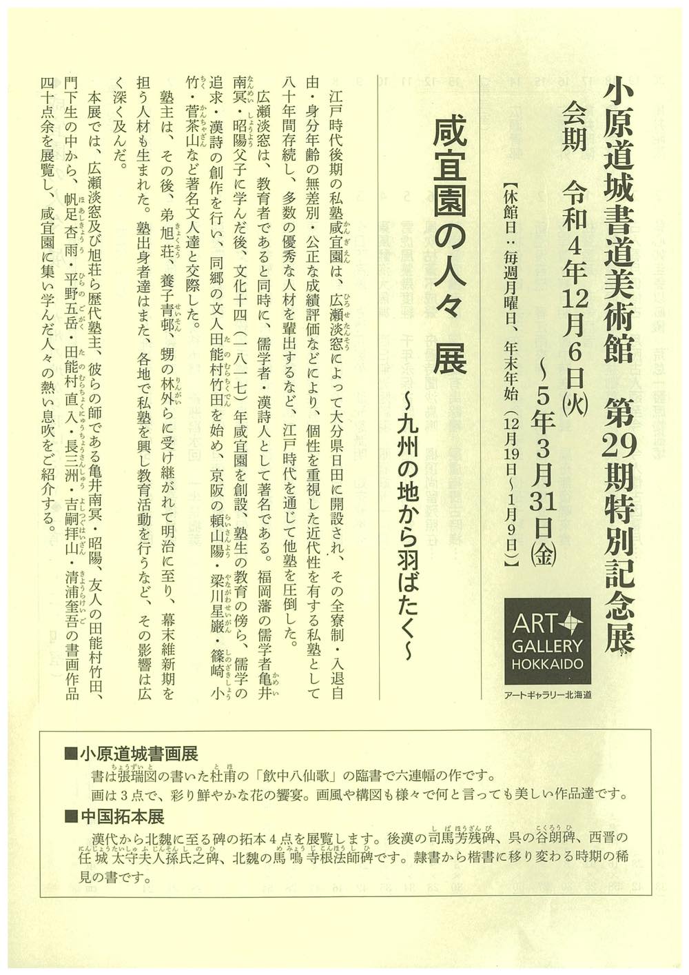 なお、書簡解読は山田博司様(北海道立文書館 元総括文書専門員)。そして書の解読は、小原道城書道美術館 宮田副館長様にご協力をいただきました。