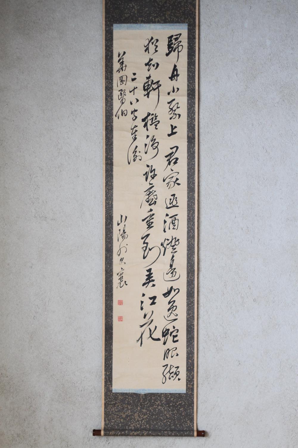 次は全22巻の日本外史を著し、幕末から明治維新・昭和の世界大戦まで広く影響を与えた頼 山陽(注2)の書です。詩の内容からすると、青洲と一献傾けたが山陽が先に酔って帰り、そのお詫びに後日贈ったものでしょうか。