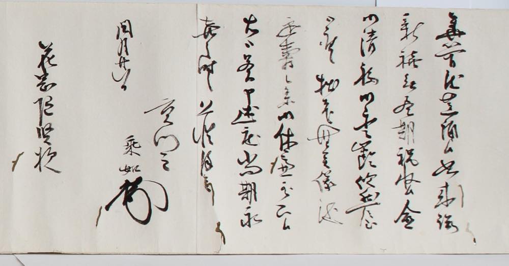 次は高野山の高僧乗如法印(注4)からの手紙です。見事な花押です。