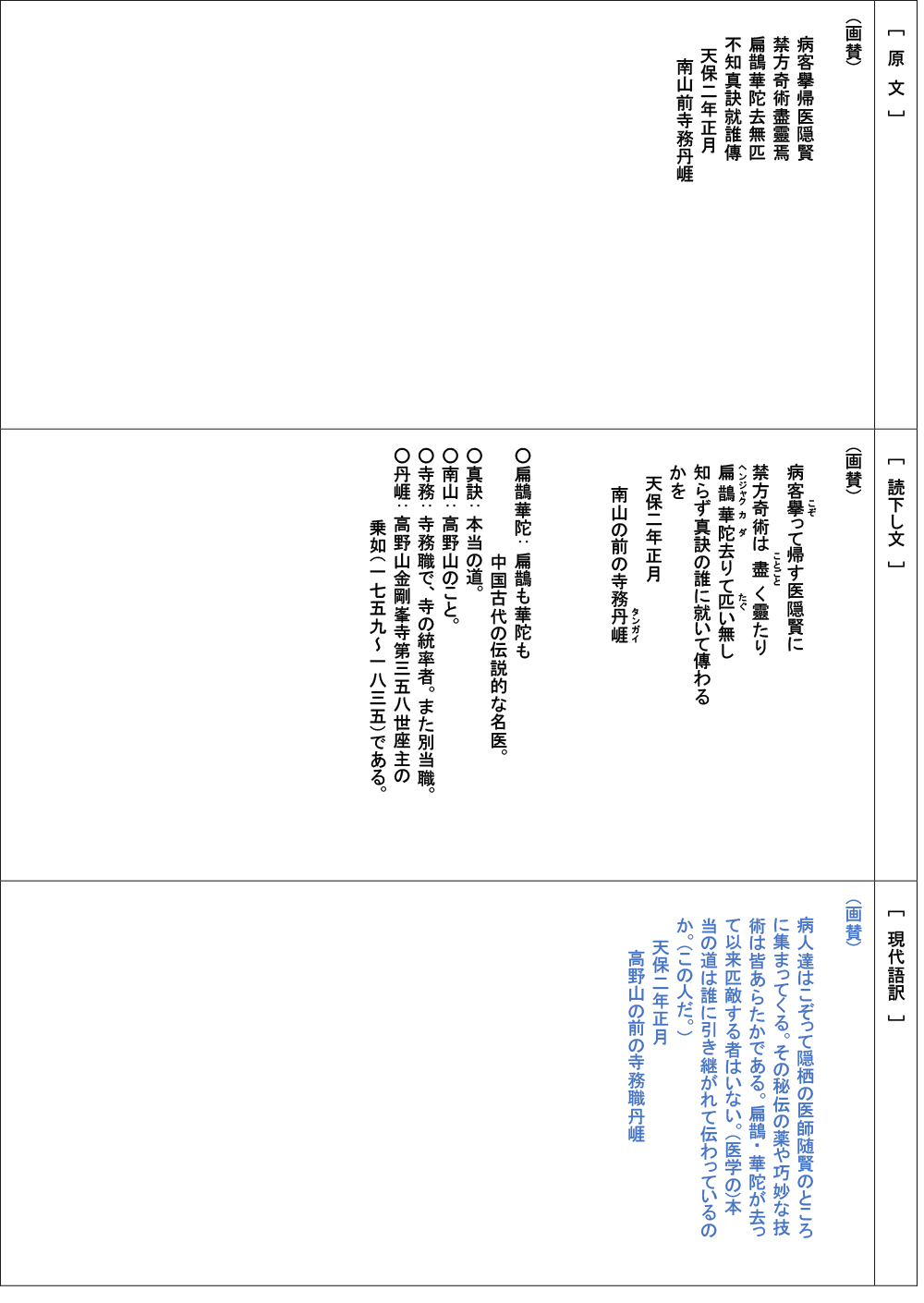 書の披露第4回目として今回は青洲本人ではなく、青洲と交流のあった方の書を掲載し、その漢詩・言葉の出典と解説を試みよう。