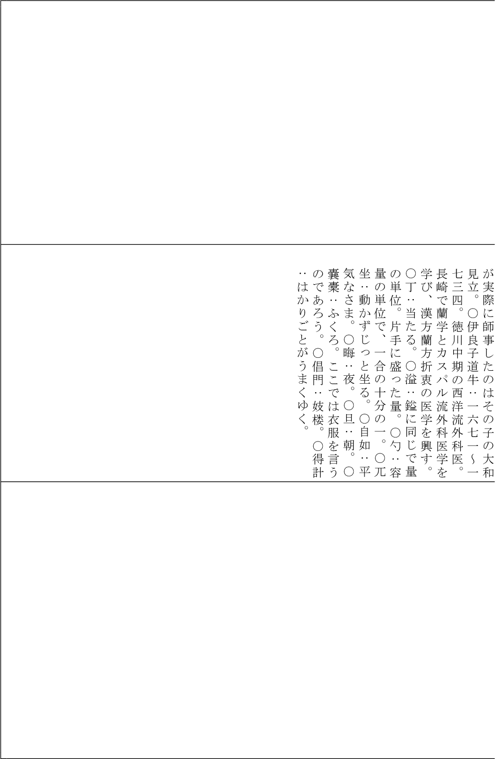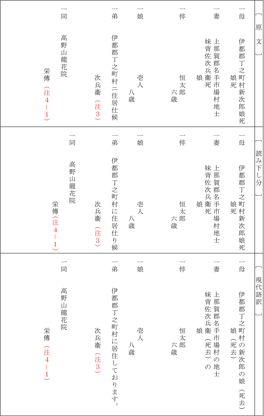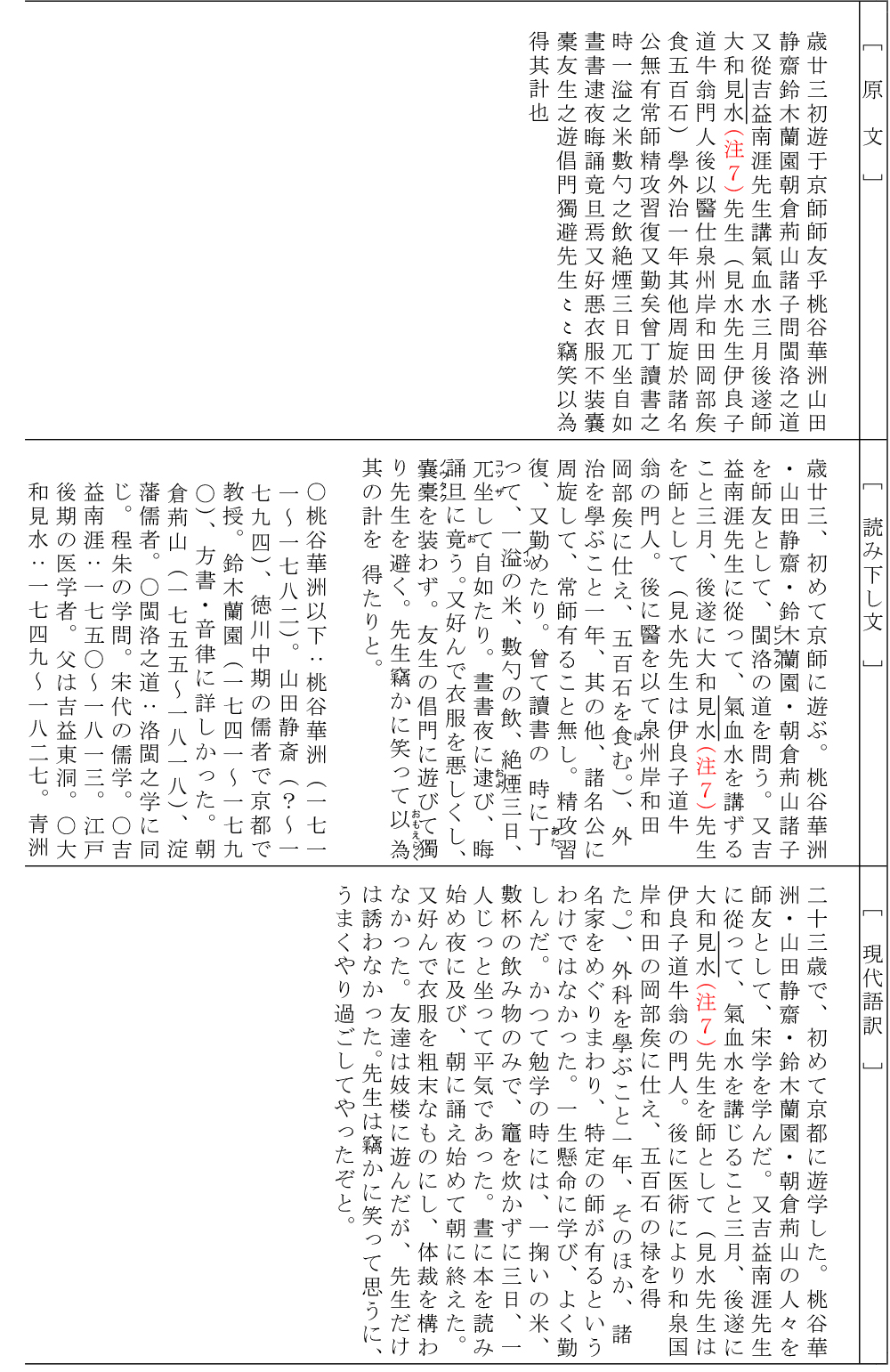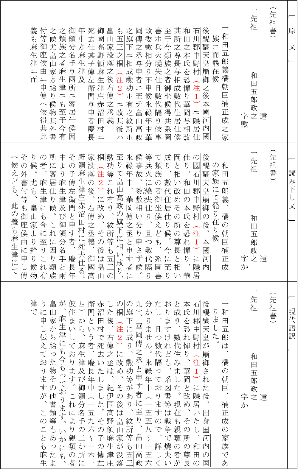 | 注8: | 士族及び帯刀の許可日については、著者不明の略伝のこの項の年月日(享保2年9月1日)と、本人自筆と思われるこの回の冒頭本文注Aの文化2年10月以降と考える文献保存会の推察とがあるが、なお、裏付ける調査が必要と考える。 |