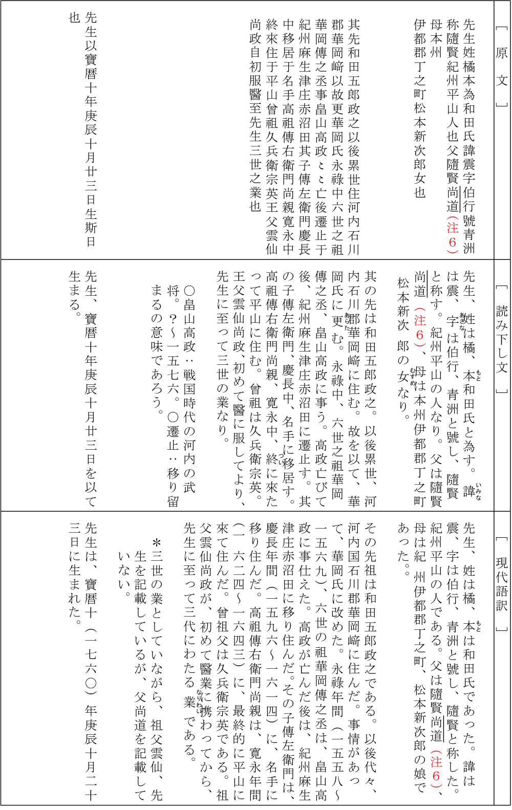 | 注9: | 七代隨賢はその後多くの品を和歌山県立医科大学に寄贈した。(第2回青洲逍遥参照) |