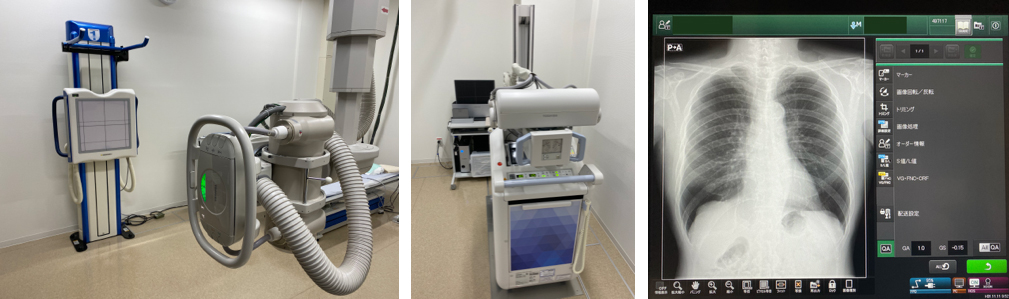 胸部および腹部を中心にレントゲン写真を撮影します。