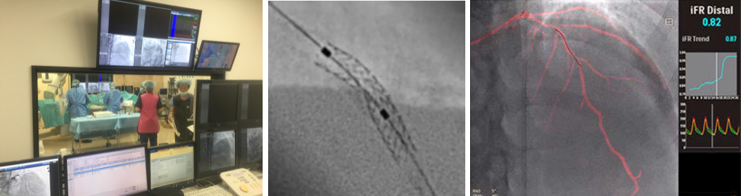 カテーテル室では、冠動脈ステント治療をはじめ下肢動脈やシャント血管の治療、ペースメーカー植え込み治療、心臓電気生理検査およびカテーテルアブレーション治療などが行われます。