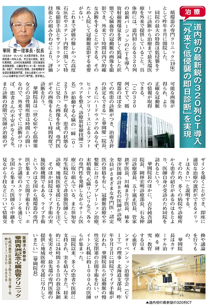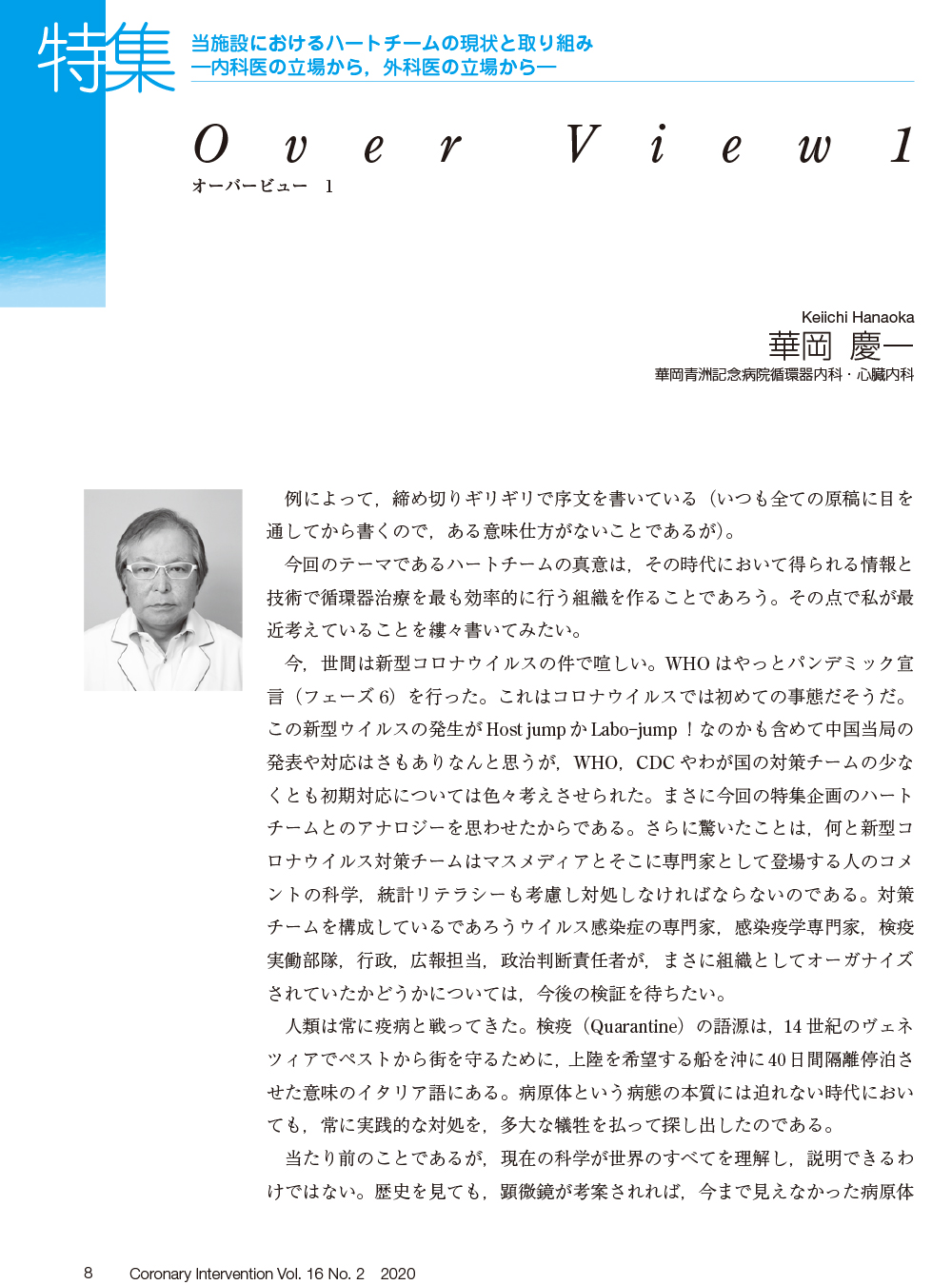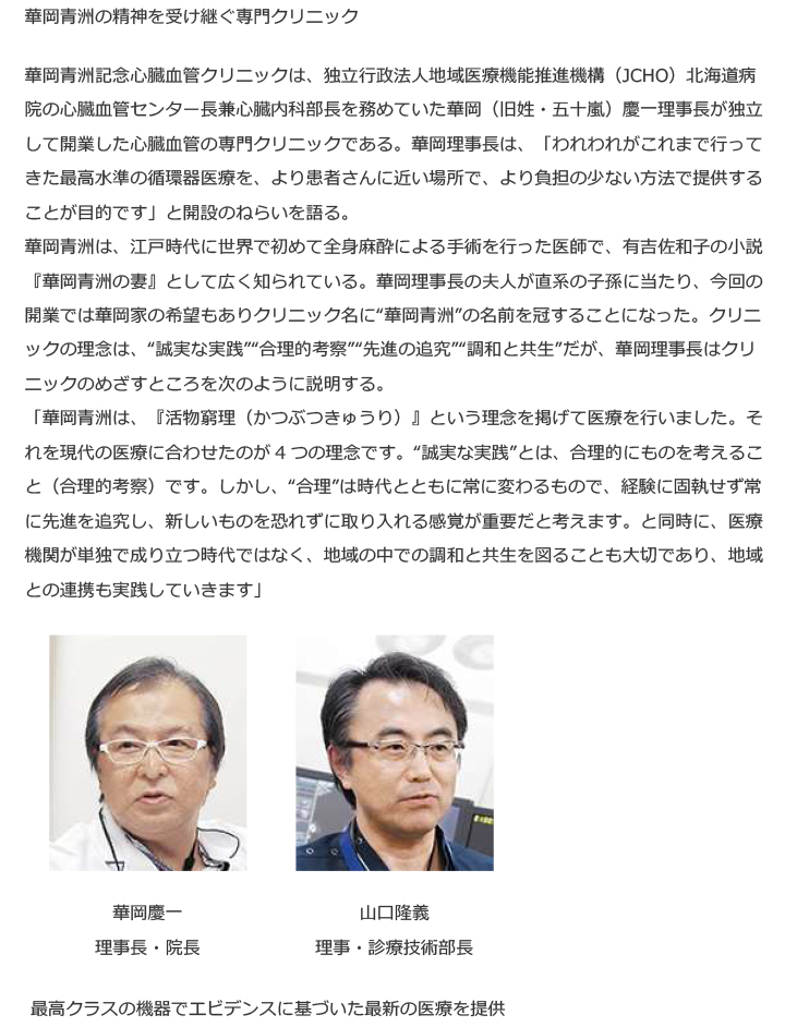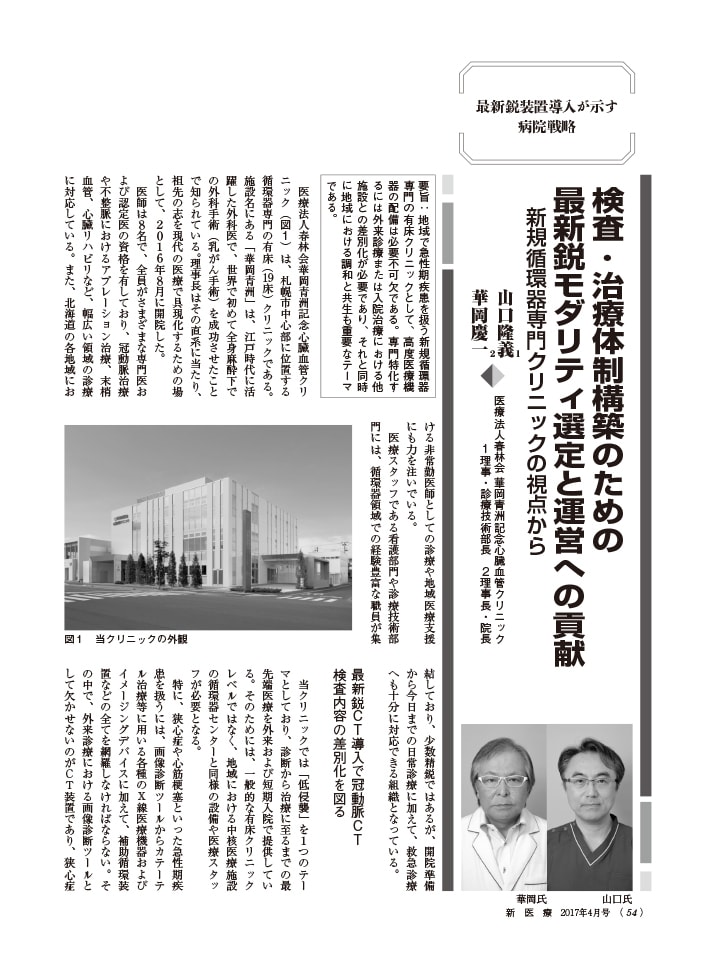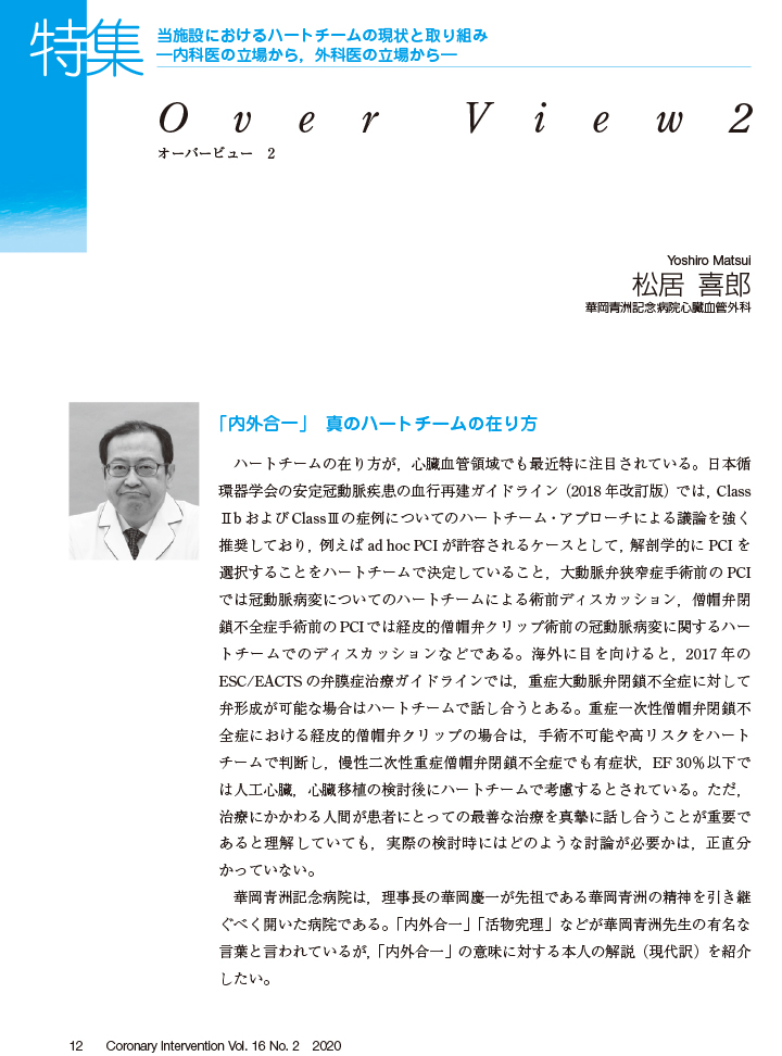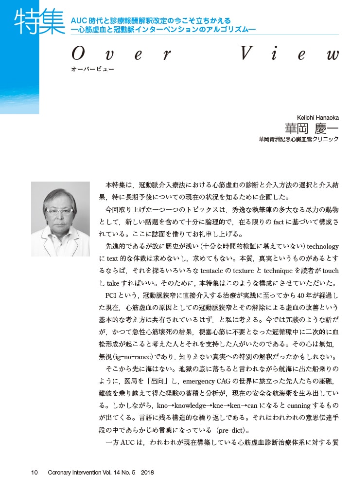 「Coronary Intervention誌」は心血管インターベンション治療を行う医師に最も読まれている医学専門誌に当院の華岡理事長、松居院長が特集で掲載されました。