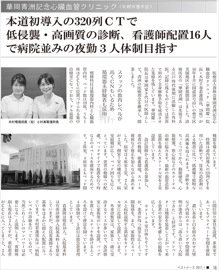 - 北海道医療新聞社のベストナース2017年1月号に掲載されました。