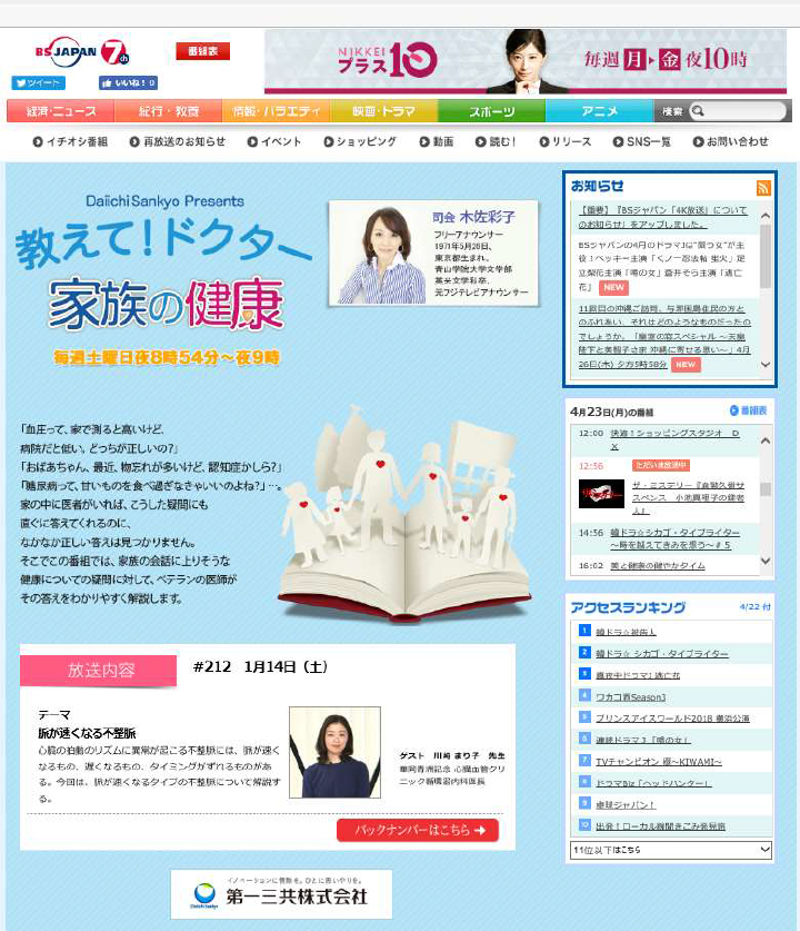 - 川﨑 まり子 先生がBSジャパンに出演しました。