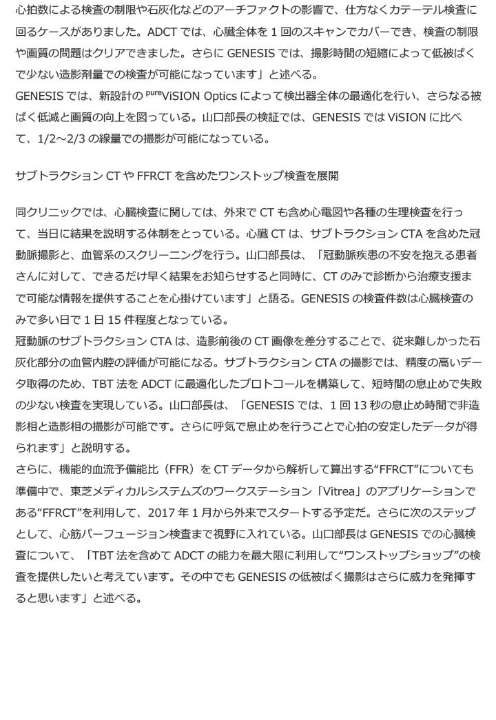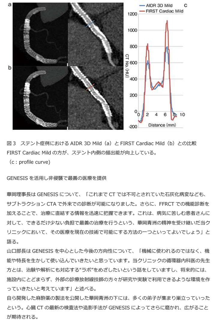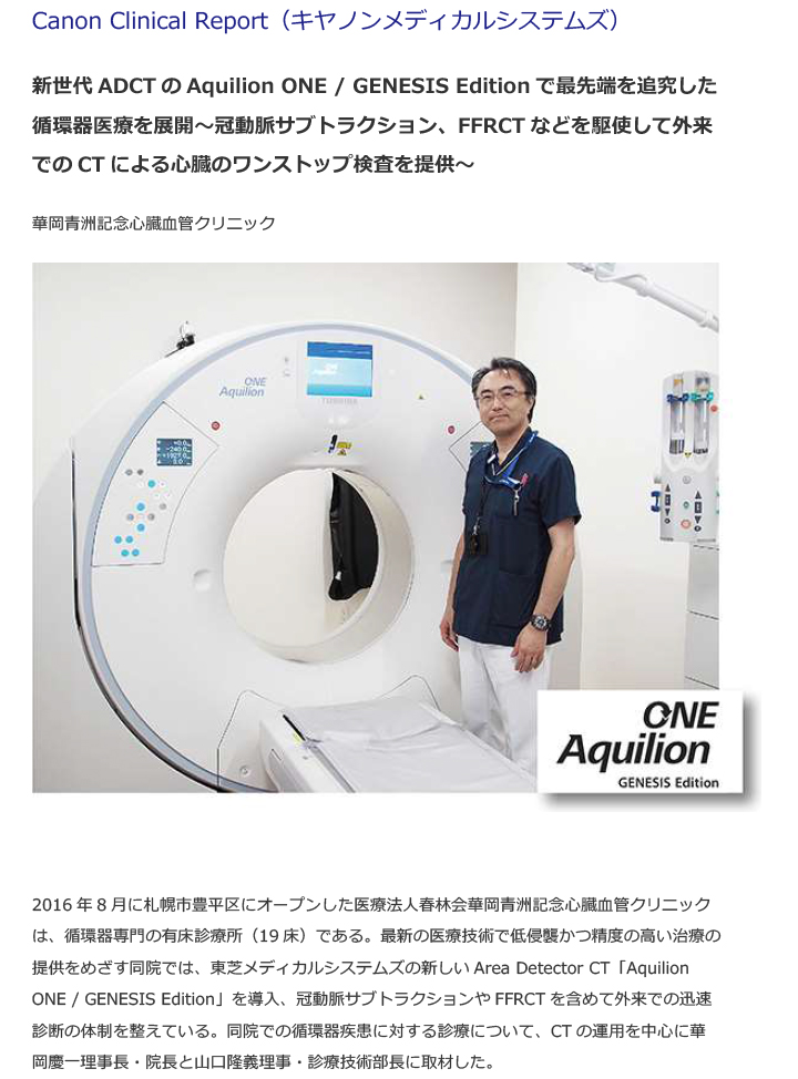 今回エントリーしたCT画像は、当院では日常的に行なわれている検査から得られる画像です。しかしながら、当院の心臓CT検査では、あらゆる技術を駆使して撮影された画像から臨床的価値の高い情報をより多く得る事を目標にしており、その取り組みが認められたものと考えています。