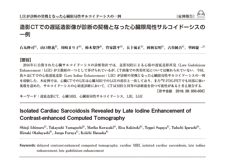 - 日本サルコイドーシス/肉芽腫性疾患学会学会誌に当院の石丸医師の論文が掲載されました。