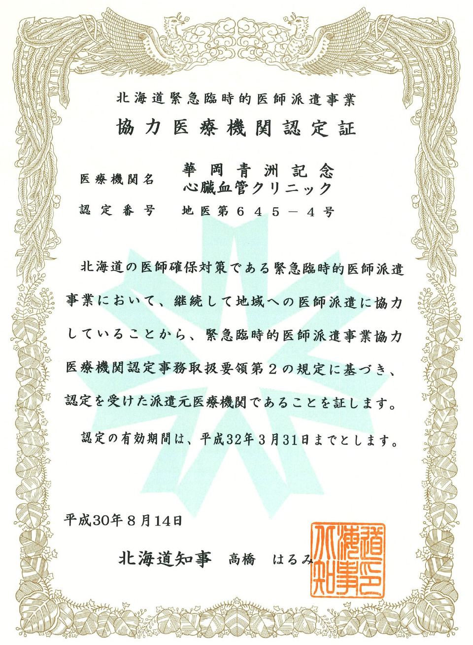 札幌市では4医療機関が認定され、内、当院が認定を受けました。