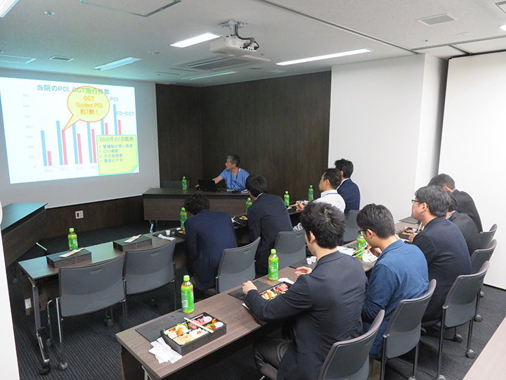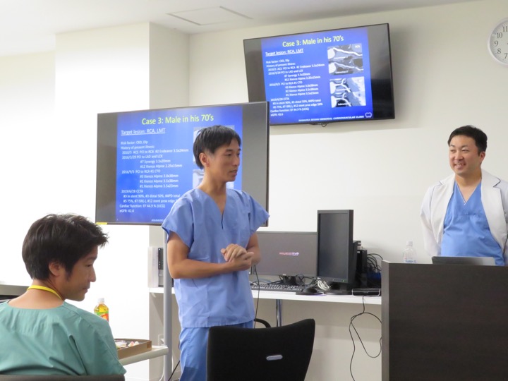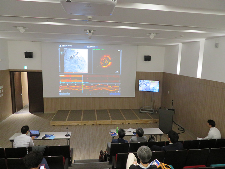 当院での治療法や治療実績などを管家医長、竿崎(ME)が紹介し、3例のOCTカテーテル治療を行いました。